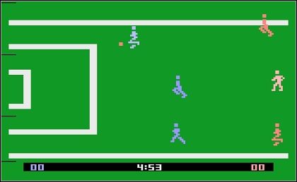 Aby w ogóle rozpocząć opowieść o historii komputerowej piłki, należy obrać jakiś umowny początek podróży. Najlepiej taki, w którym widać piłkę i zawodników. Pierwsza przyszła mi do głowy produkcja z 1982 roku o tytule RealSports Soccer, wchodząca w skład sportowego pakietu na platformę Atari 2600. Pewnie znalazłoby się coś starszego, ale umówmy się – o klonach Ponga porozmawiamy przy okazji odpowiedniego artykułu, a tu skupię się na czymś, co jasno odwołuje się do najlepszego sportu na kuli ziemskiej. Tytuł stworzony po godzinach w garażu Atari (bo taka była kiedyś moda – ludzie od sprzętu pisali też na niego gry) to mało znana dziś pozycja, w którą pewnie zagrałbym i jutro, gdyby ktoś mi za to zapłacił. Moje ambicje mają się jednak nijak do pewnego faktu, a jest nim pierwsza udana wizualizacja boiska piłkarskiego wraz z zawodnikami. Nie ma tu żadnych realistycznych drużyn czy perfekcyjnie odwzorowanych wirtuozów. Są za to linie, bramki i zlepek pikseli mający sugerować użytkownikowi, że ten kieruje akurat jakimś zawodnikiem.