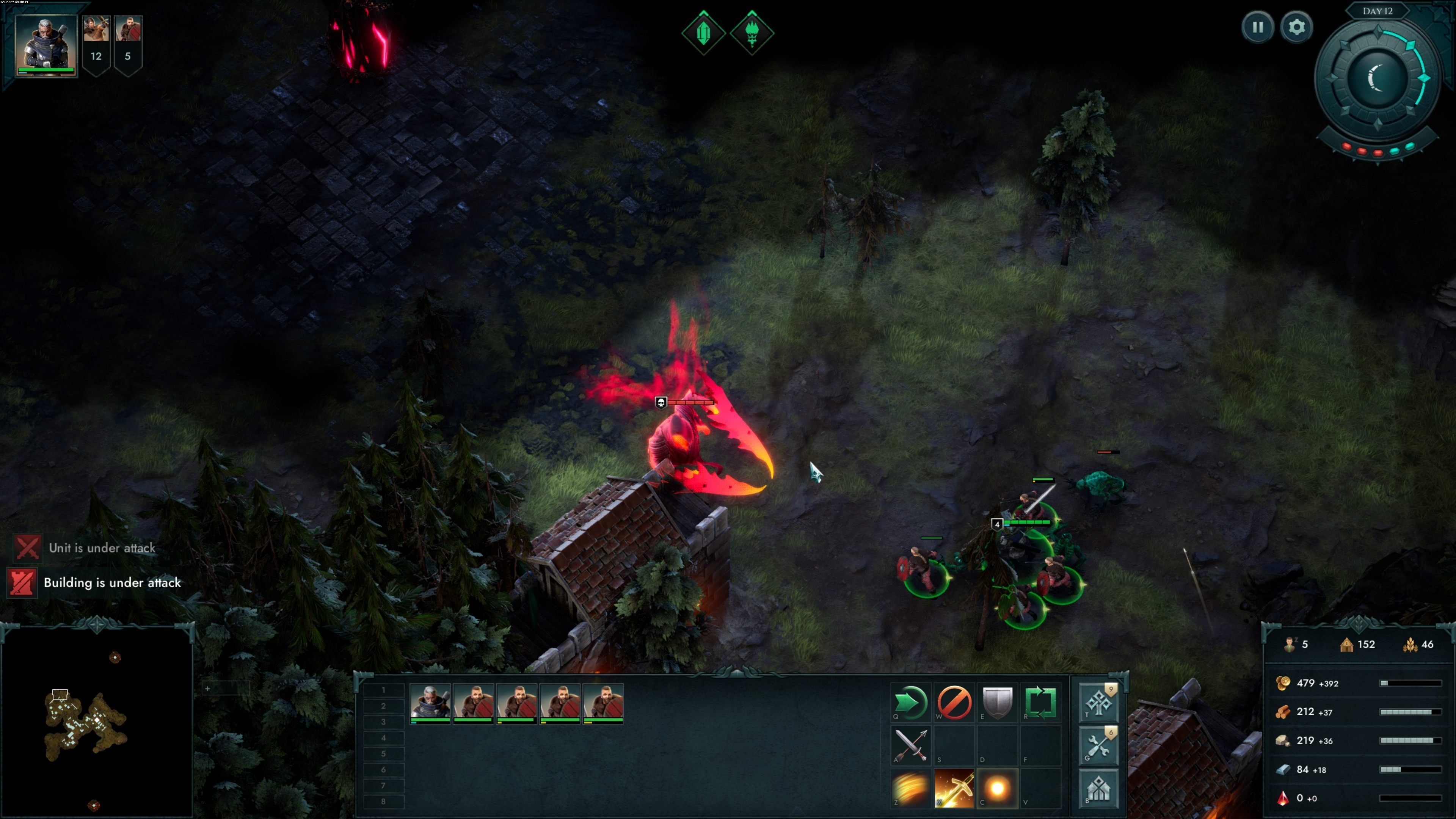 Gra nie jest jednak bezmyślną kalką They Are Billions i broni się oryginalnymi pomysłami. Szczególnie ważna okazuje się mechanika dnia i nocy. W dzień otaczające nas hordy wrogów są słabsze i mniej skore do walki. Jest to więc dobry moment na początkowe poszerzanie granic. Natomiast noc sprawia, że przeciwnicy stają się silniejsi i bardziej zuchwali (zgadza się – Alan Wake w wersji RTS). Instynkt podpowiada, żeby wtedy trzymać się bazy i wznosić mury. Szybko jednak musimy porzucić takie myśli, jeżeli chcemy przetrwać – po zmroku czekają nas lepsze nagrody za eksplorację, no i musimy liczyć się z czasem, następny atak hordy zawsze się zbliża.
