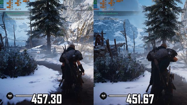 Tak zakończyliśmy akapit poświęcony różnicom w grafice w obu tych grach – dosłownie. Odbicia powierzchni to jedyny efekt widoczny gołym okiem, który można przypisać słowem „nowość”. Jasne, może się okazać, że są pewne różnice w generowaniu zalesionych terenów, czy ogólnie ilości obiektów na ekranie, ale całość oprawy wizualnej, oprócz właśnie SSR, utrzymana jest na bardzo podobnym poziomie. Powiedzcie mi teraz – dlaczego więc Valhalla chodzi tak źle? Gdzie tu sens? Czy pod mapą ukryte zostały obiekty złożone z milionów trójkątów, tylko po to, żeby zarżnąć nowoczesne karty graficzne?