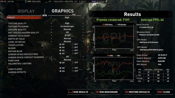 ROG Ally (1080p) | 4904 klatek wyrenderowanych/32 fps |