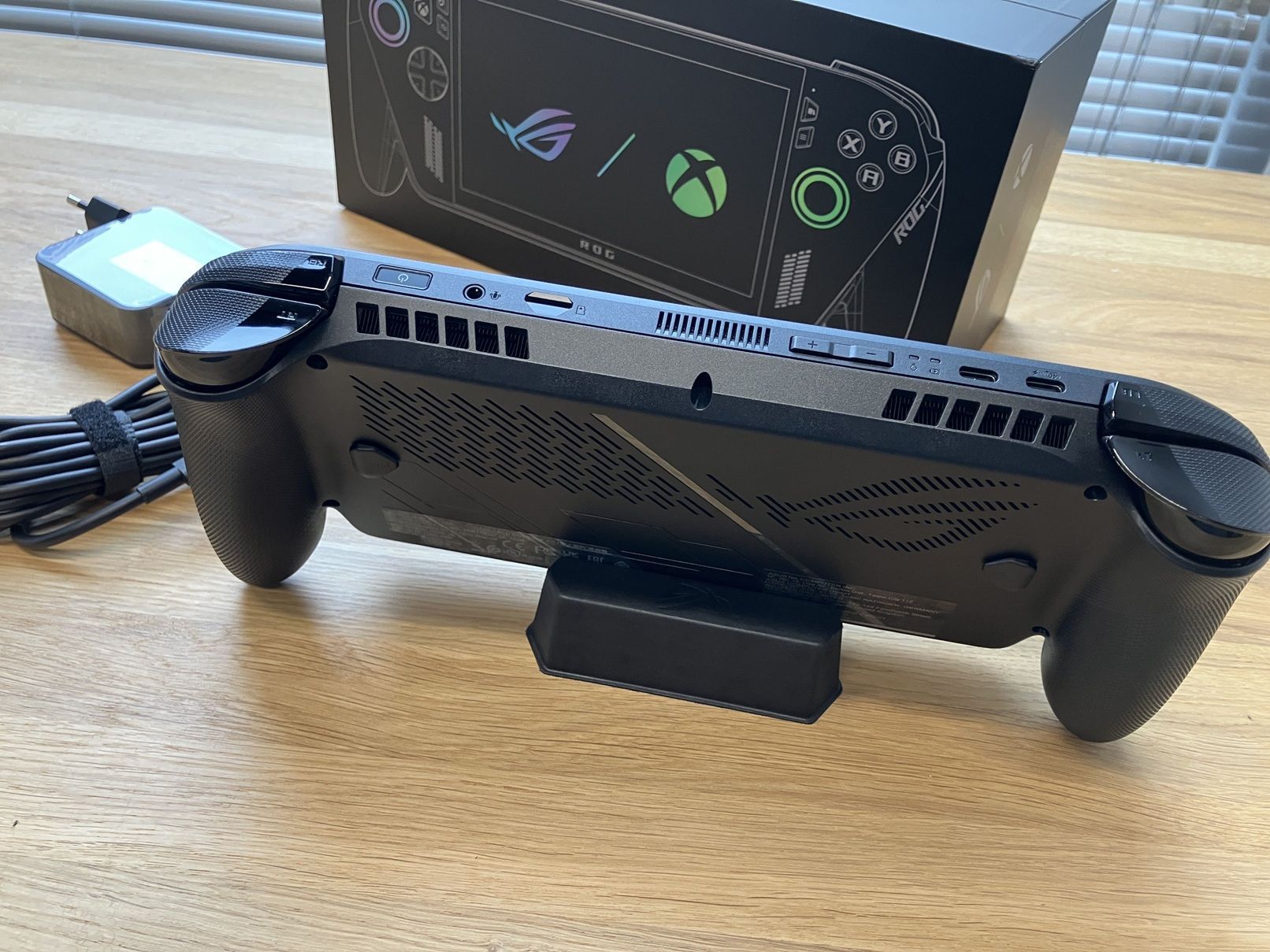 Jako posiadacz oryginalnego „rogalika” cieszę się, że ASUS zrezygnował z własnościowego złącza XG Mobile, którego funkcjonalność zasadniczo kończyła się na zaporowo drogich modułach eGPU. Dwa standardowe porty znacznie zwiększają funkcjonalność konsolki. Nietrudno mi wyobrazić sobie scenariusz, w którym np. jeden z portów może służyć do podłączenia przenośnego monitora USB, zaś drugi do ładowania konsolki. Wsparcie dla technologii Thunderbolt sprawia zresztą, że komputerowi majsterkowicze mogą w teorii poeksperymentować z zewnętrznymi kartami graficznymi operującymi w oparciu o wspomnianą technologię.