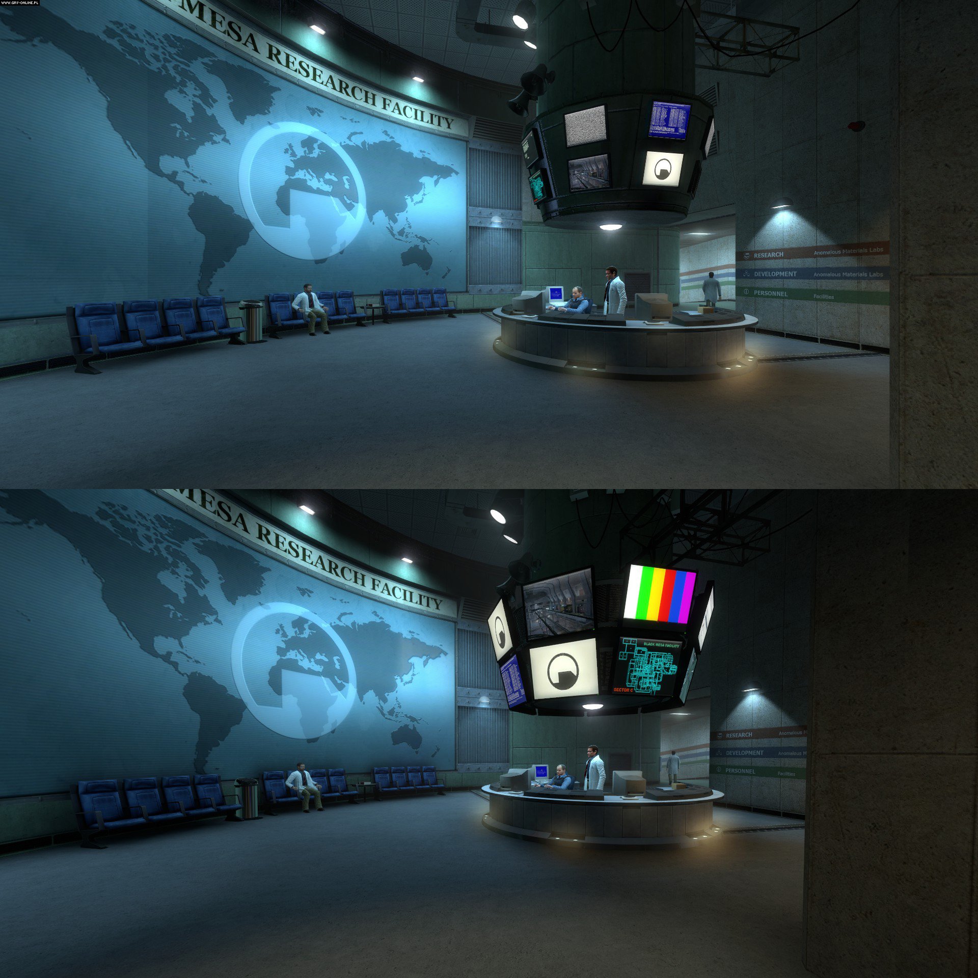 Podobnych smaczków występuje w grze zresztą całe mnóstwo. Może nie wszystkie są równie spektakularne, ale nie da się zaprzeczyć, że wiele lokacji przeszło solidny lifting. Twórcy tu i ówdzie dodali jakiś nowy element czy też efekt i choć trudno je niekiedy wyłapać, gdy zwolnimy i zaczniemy przyglądać się otoczeniu, nie sposób ukryć zachwytu nad ilością szczegółów. Atrakcją, którą nieomal przeoczyłem... jest pokaźne zwiększenie liczby obiektów, z jakimi można wchodzić w interakcje. Nieruchome tło, obok którego w pierwotnej wersji moda (oraz samego Half-Life) po prostu przebiegaliśmy, teraz jest o wiele bardziej „żywe”. To oczywiście drobnostka, ale właśnie takie detale składają się na świetność Black Mesa. A i nikt nie zaprzeczy, że nie miał nigdy ochoty porzucać komputerami czy klawiaturami w gadających do nas naukowców. Całkiem ciekawym, również nie od razu widocznym, usprawnieniem są drobne zmiany w sposobie poruszania się Gordona. Sterowanie oczywiście pozostało takie samo, ale po przeprowadzeniu kilku testów okazało się, że do poszczególnych miejsc jesteśmy w stanie dostać się w znacznie prostszy sposób niż do tej pory. Wskakiwanie na niektóre podwyższenia było dotąd możliwe jedynie przy zastosowaniu kombinacji „kucnięcie + skok” – teraz wystarczy zwykłe wybicie się do góry (tak jak w pierwszym Half-Life), co dodaje rozgrywce płynności.