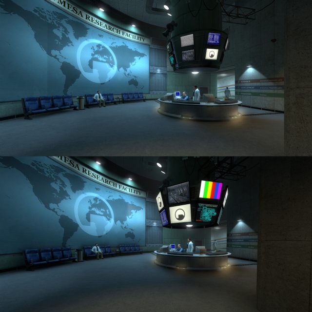 Różnice są subtelne, ale poprawa oświetlenia wyszła grze na dobre. Darmowy mod (na górze) / Black Mesa w wersji z Early Access (na dole).