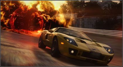 Przede wszystkim wypada najpierw pojąć, w jaki sposób zdobywa się wspomniane punkty doświadczenia. Podczas rozgrywki w Blur trzeba bowiem, poza prowadzeniem samochodu, wykazać się umiejętnością operowania ośmioma power-upami. Są one porozrzucane po trasie i mają przeróżne zastosowania – mogą przykładowo zapewnić chwilowe przyspieszenie, wysłać w kierunku najbliższego rywala samonaprowadzający pocisk czy uaktywnić wokół naszego wozu tarczę energetyczną. Takich gadżetów w danej chwili można posiadać maksymalnie trzy (każdy jest jednorazowego użytku) i przełączać się pomiędzy nimi guzikiem X. Jeśli chcemy zrobić miejsce dla innego power-upa, to wystarczy wcisnąć Y, aby pozbyć się wybranego spośród znajdujących się aktualnie w zasobniku. Używanie tych bonusów przysparza nam fanów, podobnie zresztą jak wykonywanie wielu innych akcji w trakcie jazdy. Stan konta nabijają minięcia przeszkód na grubość lakieru, długie poślizgi na zakrętach, bezpośrednie uderzenia w auta przeciwników itp. Wszystko to można wiązać w efektowne kombinacje, włączające dodatkowy mnożnik. Podobnie funkcjonował system Kudos w PGR.