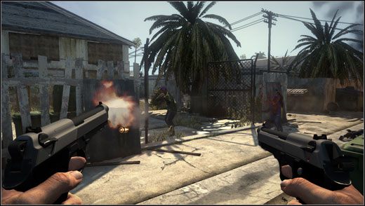 Jednym z dwóch głównych punktów programu była możliwość rozegrania misji w trybie kooperacji, którą w finalnej wersji gry znajdziemy pod koniec kampanii. Testowaliśmy wydanie na Xboksa 360 (na pytanie o przyczyny opóźnienia edycji pecetowej padły dwie odpowiedzi: troska o jakość konwersji i obawa przed przedwczesnym wyciekiem gry do sieci – można rzec: standard). Po chwili zostaliśmy podzieleni na trzyosobowe grupki, a przed rozpoczęciem scenariusza dostaliśmy możliwość dopasowania uzbrojenia do potrzeb rozgrywki. Arsenał broni prezentuje się nad wyraz przyzwoicie i jest odpowiednio zróżnicowany – oprócz klasycznych westernowych rewolwerów i shotgunów są także pistolety, karabiny maszynowe, a nawet snajperki. Grę rozpoczynamy od mocnego akcentu – wychodzimy z kościoła w sposób znany już z poprzednich edycji – grupowo wyważając drzwi. Drużynowe wkroczenie do akcji kontynuujemy, przechodząc w tryb koncentracji – spowolnienie czasu pozwala na unieszkodliwienie większej liczby wrogów, a co za tym idzie – łatwiejszą przeprawę przez uliczkę. Trafiamy na małe targowisko, gdzie do ucieczki przygotowuje się jeden z liderów gangu narkotykowego. By dotrzeć do stojącego nieopodal samochodu, musimy jednak najpierw oczyścić plac z wrogów. W trakcie eliminowania oprychów w oczy rzuca się brak systemu osłon, który nieco utrudnia prowadzenie wymiany ognia. Szukanie miejsca, w którym możemy skutecznie schronić się przed ostrzałem zajmuje trochę czasu, a wyglądanie spoza przeszkody okazuje się niewygodne i często podczas zmieniania pozycji obrywamy kulkę.