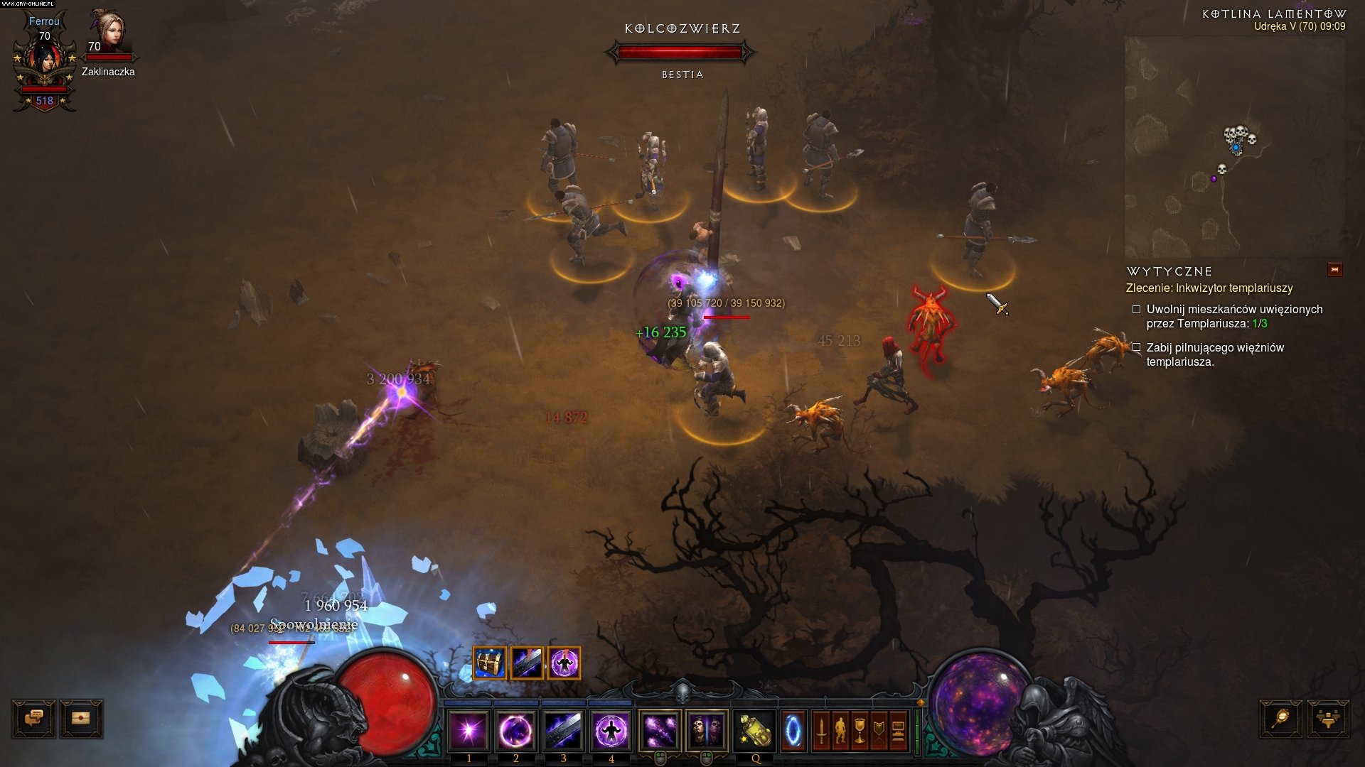 Muszę powiedzieć, że wyśmienicie sprawdza się to w boju. Jeżeli zgromadzimy wszystkie niezbędne części wyposażenia, odpowiednio dobierzemy umiejętności, a całość uzupełnimy o Pierścień Królewskiej Wspaniałości, uzyskamy iście morderczą maszynkę do mielenia całych tabunów piekielnych pomiotów. Żadna „elita” nie będzie straszna, gdy np. potraktujemy ją Tąpnięciem z runą Szarpnięcie (wrogowie zostaną przyciągnięci i ogłuszeni), a następnie Rozpruciem, by na końcu przejechać się po niej wzmocnionym o rzeczone Rozprucie Tornadem. Coś pięknego, parę chwil i zbieramy łupy. Równie widowiskowo wygląda złapanie potworów w Spowolnienie Czasu, uruchomienie Tornada Energii i zasypanie niemal zastygłego przeciwnika gradem meteorytów. To wszystko i znacznie więcej oferuje najnowsza aktualizacja. Jeśli przy okazji będziemy dysponować klejnotami legendarnymi wzmacniającymi nasze możliwości ofensywne (np. zwiększającą obrażenia potworów obarczonych ograniczoną kontrolą Zmorą Uwięzionych), destrukcja okaże się jeszcze bardziej skuteczna.