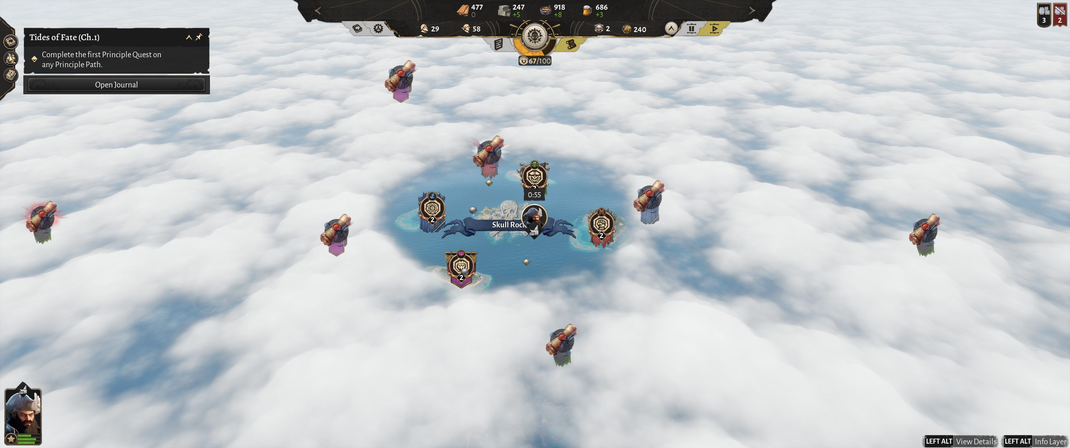 I tu dochodzimy do eksploracji – w Corsair Cove nie zajmujemy się tylko budową szczęśliwego, pijanego miasteczka, ale również wyruszamy w morze, aby szukać skarbów i atakować statki. Problem w tym, że nie dzieje się to tak, jak myślicie. Gdy już wybudujemy nasz statek, przydzielimy kapitana (jest ich kilku i jeszcze więcej do odblokowania; każdy ma swój charakter i swoje statystyki, które lepiej sprawdzają się przy wykonywaniu aktywności powiązanych z jednym z czterech ww. drzewek) oraz załogę, możecie ruszać ku horyzontowi. Nie kierujemy jednak naszym statkiem ani myszką, ani klawiaturą – zamiast tego możemy wybrać jedno z wyświetlanych na mapie świata wydarzeń i kliknąć „Wyrusz”, aby nasz statek popłynął tam automatycznie.