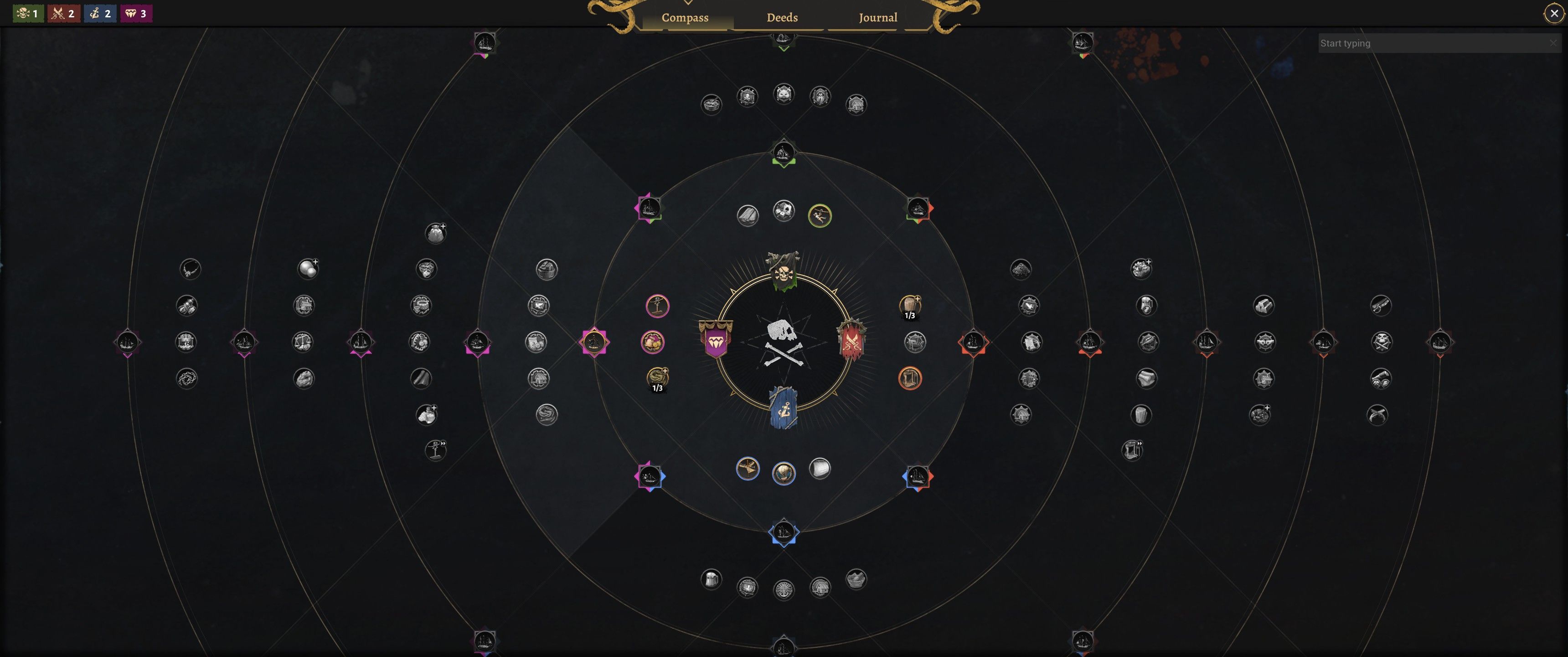 Kolejne budynki – i sposoby budowania dróg, takie jak mostki, windy, tyrolki – odblokujemy wraz z fabułą lub poprzez drzewko umiejętności. Te jest dość duże i podzielone na 4 części: Empire, Seafaring, Wealth, Notoriety (Imperium, Żegluga, Bogactwo, Sława). Każde z nich odblokujemy wykonując inne, przypisane do danej dziedziny czynności, które pozwolą znowuż zaliczyć mikrozadania (tzw. Deeds), za które dostaniemy punkty do odblokowywania drzewka. Spokojnie, to naprawdę banalne. Wystarczy, że będziecie wykonywać zadania wyświetlane na mapie zaznaczone kolorem odpowiadającym danemu drzewku i zdobędziecie punkty, za które odblokujecie albo zupełnie nowe budynki – takie jak chociażby hazardową spelunę, czy nowe, lepsze okręty, czy też po prostu pasywne bonusy do produkcji.