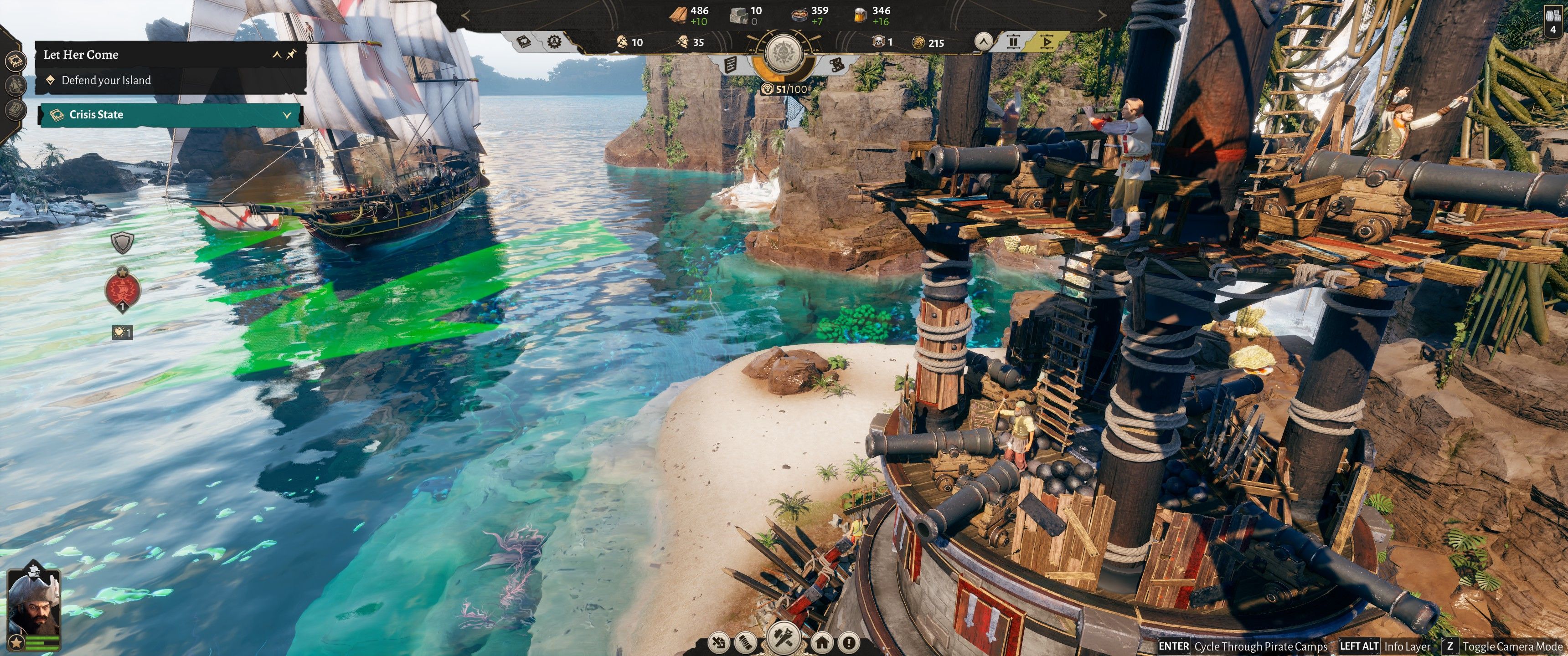 Stopniowo będziemy rozbudowywać się na całą wyspę, przejmując kontrolę nad kolejnymi surowcami, które przydadzą się w naszych nowo odblokowanych budynkach. Zadbamy również o jej ochronę, budując (i zaopatrując) wieże strażnicze. Później zaś, oczywiście, przejmiemy inne wyspy.