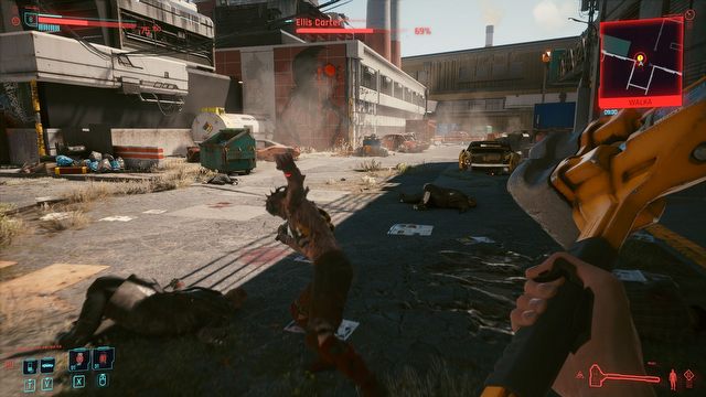No dobrze, pozwólmy Cyberpunkowi jeszcze raz błysnąć – chociaż odrobinę. Od początku było jasne, że domyślną metodą rozwiązywania problemów w Night City będzie faszerowanie sprawców tychże problemów ołowiem. CD Projekt RED dołożył starań, byśmy czuli się wtedy tak, jakbyśmy grali w rasowego FPS-a. I dopóki obserwujemy to, co dzieje się z bronią w rękach bohatera, trudno zgłaszać zastrzeżenia. Deweloperzy odpowiedzialni za animacje oglądania czy przeładowywania spluw zasłużyli na solidną podwyżkę. Nawet w Borderlands 3 nie wyposażałem się tak często w oręż, którego nie zamierzałem używać, tylko po to, by zobaczyć, co będzie się z nim działo w dłoniach postaci. Również siła odrzutu przy strzelaniu została solidnie odwzorowana.