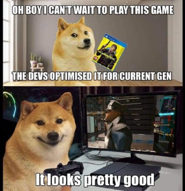 Duża część memów dotyczy wyglądu gry CD Projekt RED na konsolach obecnej generacji, a w szczególności na PlayStation 4. Gra wygląda tam miejscami… cóż lepiej sami sprawdźcie.