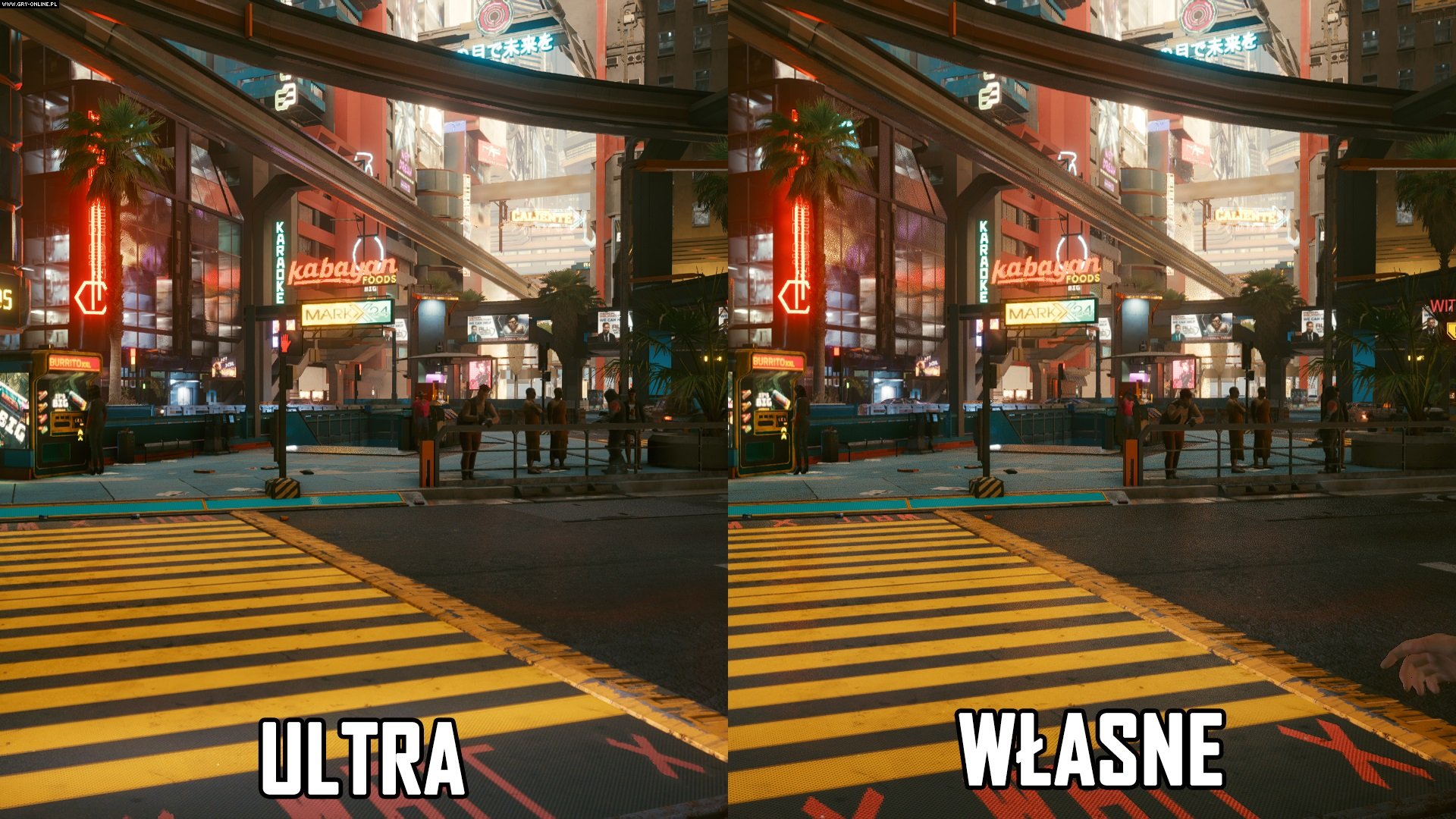 Jest natomiast światełko w tunelu. Grafika na wyższych ustawieniach wygląda po prostu bardzo dobrze i powoduje, że Cyberpunk 2077 należy do ścisłej czołówki gier nastawionych na oprawę wizualną. Musisz sobie zadać więc pytanie – grać w 60 FPS (prawie) z obniżonymi efektami, czy podziwiać świat taki jakiego chcieli tego twórcy w 30 klatkach na sekundę w rozdzielczości 1080p.