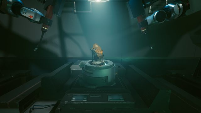 Oczywiście starałem się udziwnić ten opis na maksa, bo i mowa o Bridge Baby z Death Stranding, a jak sami wiecie, ta gra do najnormalniejszych nie należy. Gdzie znajdziemy tegoż osobliwego bobasa w Cyberpunku 2077? Wystarczy przeszukać wszystkie pomieszczenia laboratoryjne w budynku, do którego włamujemy się wraz z Riverem podczas questu „Kwestia czasu”. Trudno go przeoczyć, bo jest wyróżniającym się elementem otoczenia. Możemy go nawet zeskanować, by odczytać następujący komunikat: