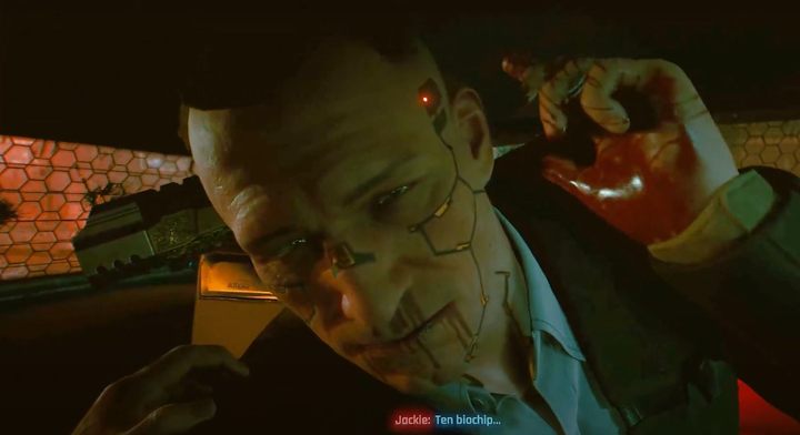 Jackie Wells, któremu głosu w polskiej wersji językowej użyczył Jacek Król, to jedna z sympatyczniejszych twarzy, jakie oglądamy w Night City. Po prostu nie da się tego wielkiego chłopa o hiszpańskich korzeniach nie lubić. Nic więc dziwnego, że kiedy dochodzi do (zaspoilerowanej przez trailery gry – dobra robota, CD Projekcie RED!) rozłąki z naszym kompanem, ten przekazuje nam arcyważny dla fabuły biochip, najpierw wyciągając go sobie z głowy.