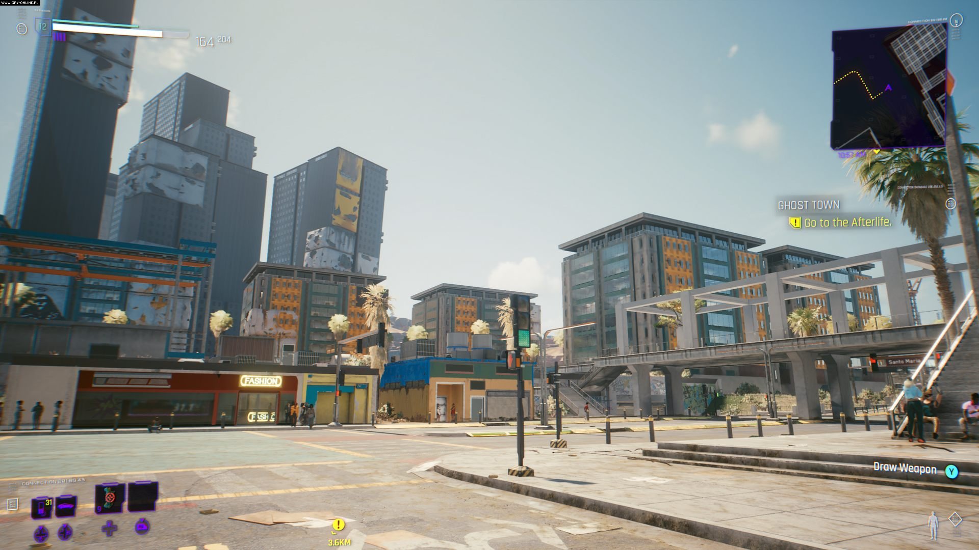 Nawet w ślicznym neonowym centrum znajdą się zakamarki – gdzieś przy schodach, pod mostkiem – gdzie kryją się śmieci segregowalne i te ludzkie, gotowe zrobić Ci krzywdę za eurodolara. Widujesz tu, zupełnie jak w prawdziwej Kalifornii, bezdomnych śpiących na chodniku tuż obok przechodniów. Zdarzyło mi się, że idąc śladem trupów leżących na ulicy, natrafiłem na trzech cyberbandytów, palących fajki po zabójstwie i gapiących się z kładki na ulicę. Wyrwałem chwasty. Przed siedzibą potężnej korporacji Militech zobaczyłem z kolei protest. Paru aktywistów robiło szum, a bojowy robot i kilku żołnierzy patrzyli na nich niewzruszeni. Wszędzie czuć, że coś z tym światem jest nie tak.