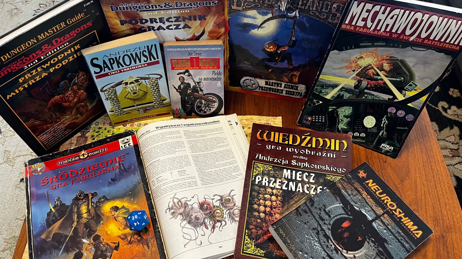 ADAM, CO TAKIEGO ROBISZ? Zbieram podręczniki do papierowych RPG. Wiecie, Dungeon & Dragons, paczka znajomych, dużo wielościennych kości na stole, no i potęga wyobraźni.