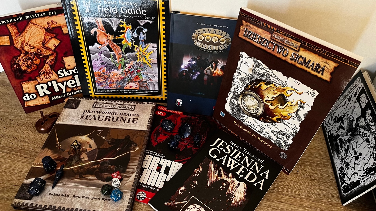 ILE MASZ TYCH PODRĘCZNIKÓW? Jakieś 130–140 różnych książek, w tym podręczniki z zasadami, gotowe przygody, całe kampanie czy przewodniki po światach, w których osadzone są konkretne systemy.