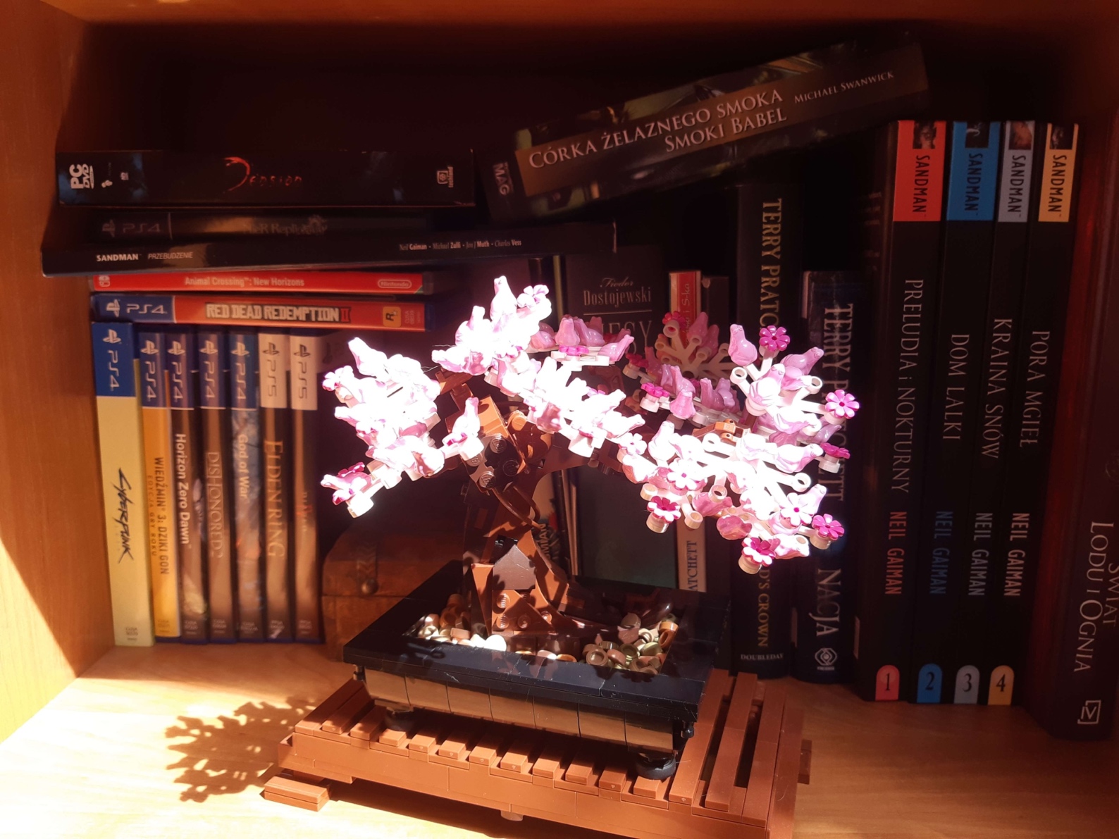 Książki wydane na papierze czy gry w pudełkach cieszą oko i serce, ale tylko do momentu, gdy nie trzeba się przeprowadzić lub – co gorsza – przeprowadzić się, kiedy nie do końca wiadomo, na jak długo i czy opłaca się wszystkie swoje skarby taszczyć ze sobą. Jako że takich przeprowadzek w ostatniej dekadzie zaliczyłam kilka, wygrał rozsądek – niemal wszystkie moje pudełka zostały w domu rodziców (książki przygarnęła siostra). Teraz już nawet nie buduję kolekcji od nowa (przeświadczenie, że za chwilę trzeba będzie się przeprowadzić kolejny raz, zostaje człowiekowi z tyłu głowy). To, co widzicie na zdjęciach, to po prostu gry, do których jeszcze w przyszłości wrócę; pozostaną na tej półce tak długo, aż w końcu się nimi znudzę i wymienię na inne.