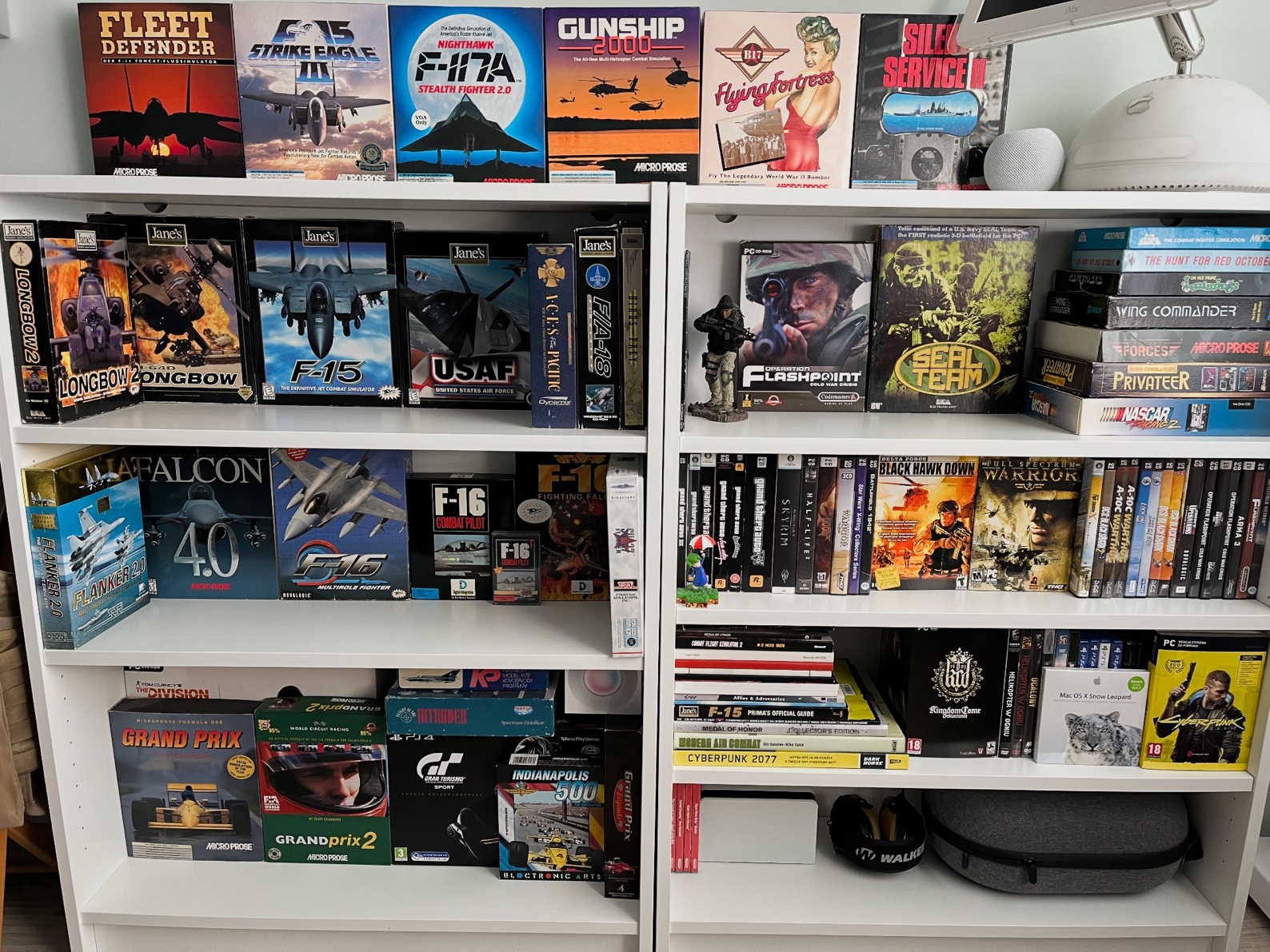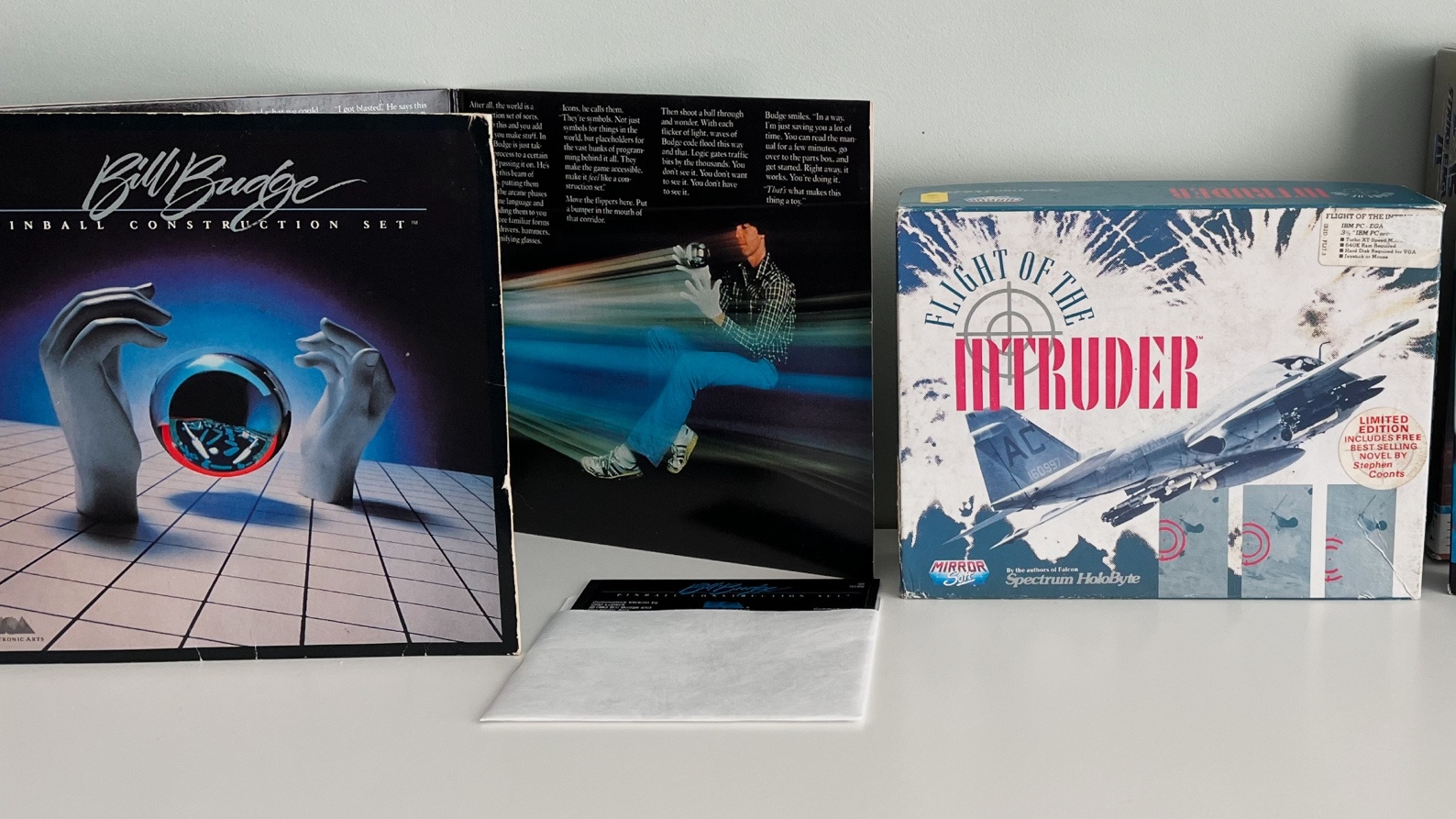 Ciekawostką jest też Flight of the Intruder z 1990 roku autorstwa Rowan Software. To jedyna znana mi gra z tamtych czasów, wydana w „poziomym” pudełku. W środku, oprócz nośników, mapy i instrukcji, znalazła się nawet powieść Stephena Coontsa, na podstawie której powstały gra i film o tym samym tytule.”