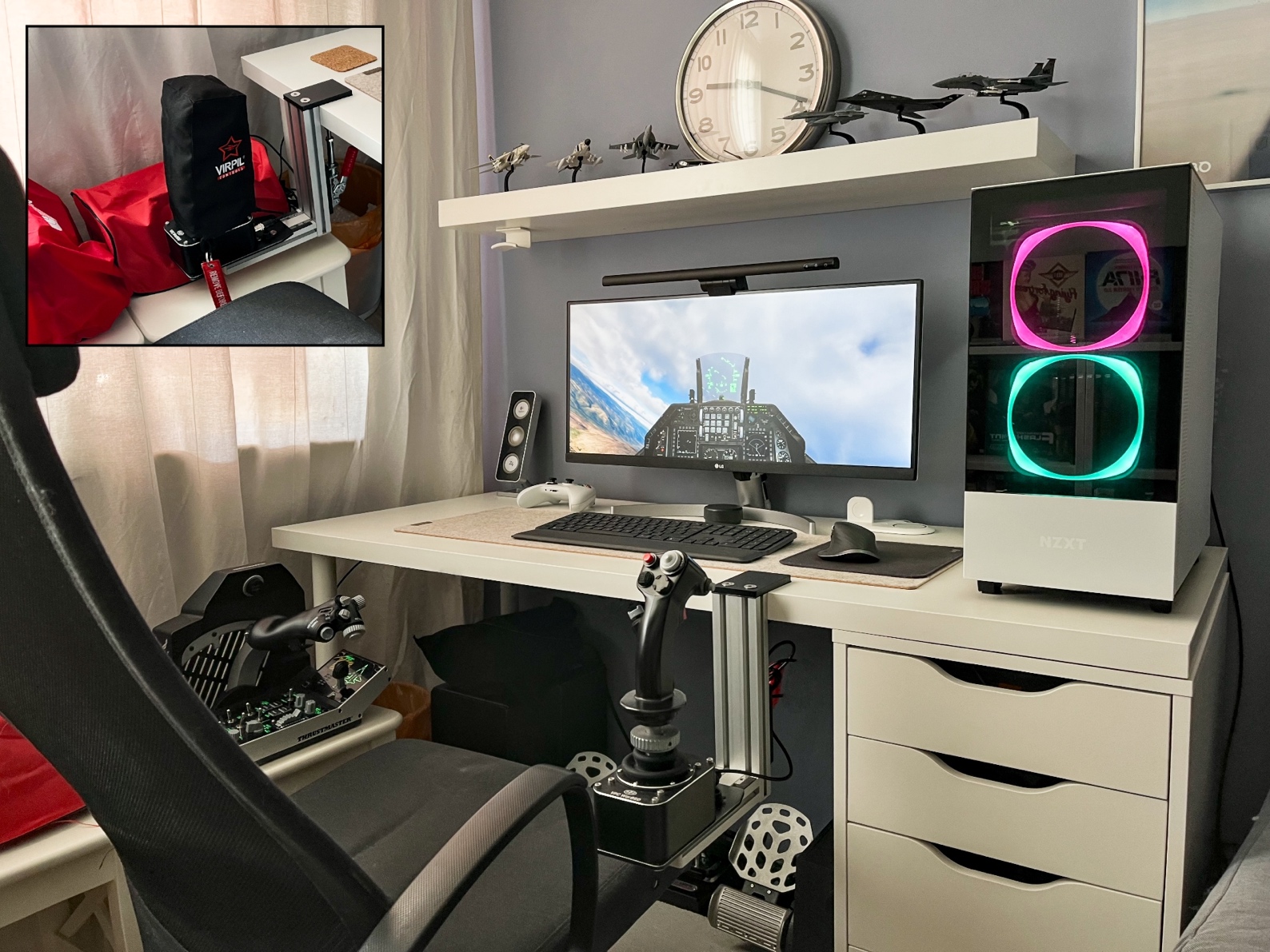„Na moim stanowisku znalazło się miejsce na gadżety związane z symulatorami lotniczymi, ale próżno szukać tu gamingowych klawiatur, myszek i tego typu wyposażenia. Wszystko jest podporządkowane wygodzie pisania oraz stylistyce „minimal desk setup”, która oprócz braku zbędnych rzeczy zakłada również całkowite ukrycie wszelkich kabli.