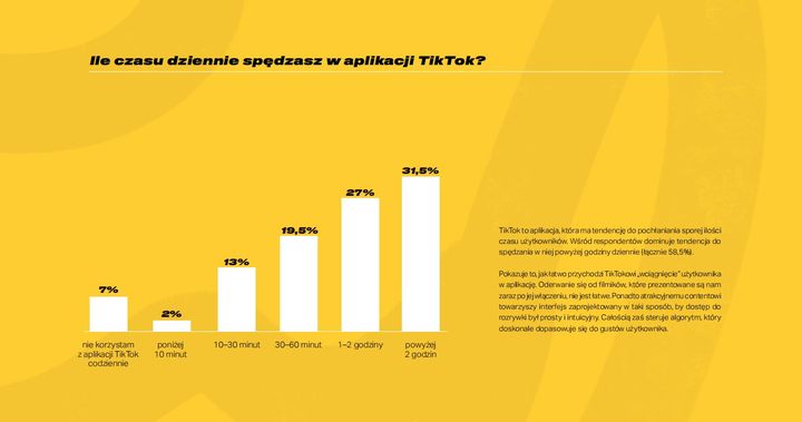 Pewnie nie wydaje się to być straszną liczbą, patrząc na to, że większość dnia i tak spędzamy gdzieś w sieci. Przypominam jednak, że TikTok to serwis oparty na kilkusekundowych, maksymalnie trzyminutowych filmikach, które przeglądamy jeden po drugim. Dodajmy do tego mechanizm, który dobiera treści pod nasze zainteresowania i dodatkowo robi to tak, abyśmy się nie nudzili. W efekcie otrzymujemy niezwykle uzależniającą mieszankę treści i mechanizm, gromadzący masę informacji o użytkowniku.