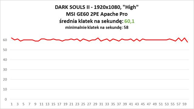 Ponownie perfekcyjny rezultat. Dark Souls II nie stanowi żadnego problemu dla MSI GE60 2PE Apache Pro.