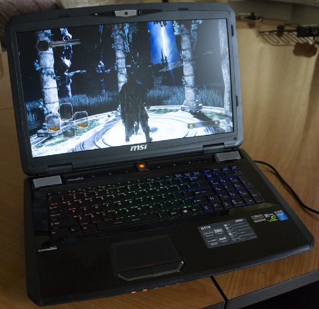GT70 Dominator Pro – starszy brat omawianego wcześniej modelu GT60. Core i7-4800MQ i GeForce GTX-880M z 8 GB GDDR5. Brzmi znajomo? GT70 ma te same podzespoły, co wcześniej omawiany model z numerem „60” w nazwie. Różnica sprowadza się do zastosowanego kadłubka, w którym udało zmieścić się 17-calową matrycę o rozdzielczości Full HD. Jest to miła odmiana dla graczy, którzy oczekują nie tylko wysokiej wydajności, ale zależy im również na możliwie dużym ekranie – 2 cale więcej robią różnicę, nad którą warto się zastanowić.