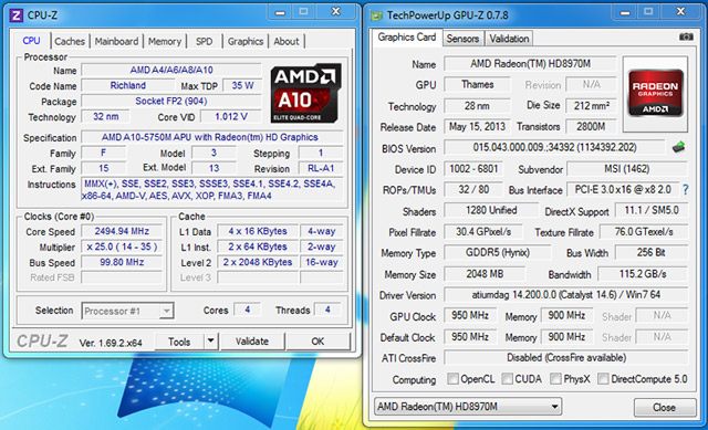 GX70 Destroyer to połączenie 2-modułowego, 4-wątkowego procesora AMD A10-5750M o taktowaniu 2,5 GHz oraz najszybszego mobilnego Radeona, czyli modelu HD8970M z dwoma gigabajtami pamięci do dyspozycji rdzenia graficznego.
