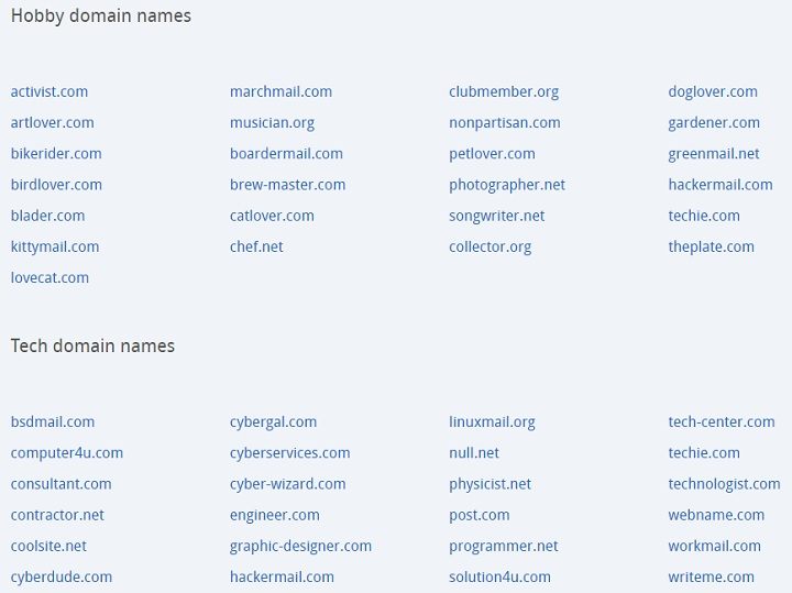 Inną małą i ciekawą usługą webmail jest Mail.com. Niestety, w Polsce mało kogo ma szansę zainteresować ta poczta. Wszystko przez to, że jej największy atut, czyli ponad 200 bezpłatnych domen występuje jedynie w języku angielskim. Już tłumaczymy, o co chodzi. Na Mail.com da się stworzyć adres poczty elektronicznej z wykorzystaniem domen, które wskazują np. na posiadany zawód. Do wyboru dostępna jest m.in. repairman.com, secretary.net, teachers.org i priest.com. Fajna sprawa, ale już niekoniecznie dla polskich specjalistów. Angielski adres może nic nie mówić części klientów ogrodnika Andrzeja, który postanowi wpisać na swojej wizytówce [email protected], a wtedy cały czar pryska.
