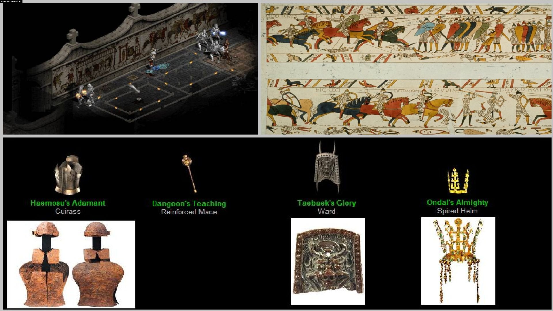 W grze nie brak również inspiracji historią, kulturą oraz sztuką. Podczas wyprawy przez akt I jedną z ostatnich przemierzanych przez nas lokacji jest katedra, w której możemy zobaczyć dziwnie znajomy obraz. To część Tkaniny z Bayeux przedstawiająca Harolda, duke’a Anglików, i jego rycerzy jadących do kościoła w Bosham. Z kolei zestaw przedmiotów Niebiańscy Bracia inspirowany był prawdziwymi skarbami Korei Południowej.