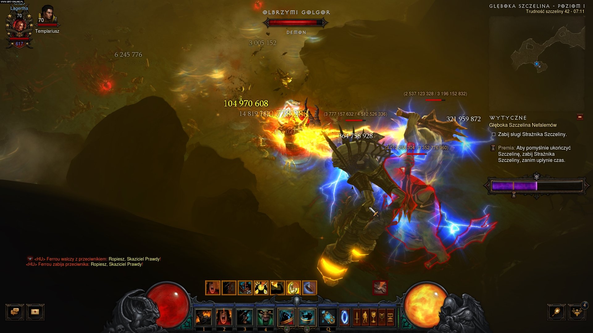 Blizzard nie tylko na tym polu wprowadził zmiany. Powszechnie nielubiana i niezwykle nudna w swym charakterze Kraina Prób została zlikwidowana, podobnie jak fragmenty kluczy potrzebnych do otwarcia Szczeliny Nefalemów. Teraz wystarczy podejść do Obelisku i wybrać Szczelinę Nefalemów lub jej głęboki wariant. W przypadku tego ostatniego zniknęły również klucze odpowiadające ukończonym lub możliwym do przejścia poszczególnym poziomom Głębokiej Szczeliny. Teraz system działa inaczej. Zapamiętuje wszystkie dotychczas zaliczone levele – chcąc kolejny raz wejść do takiej szczeliny, wybieramy po prostu jej poziom z listy i od razu przystępujemy do walki. Z racji możliwości, jakie daje Kostka Kanaiego, Blizzard wprowadził cztery dodatkowe poziomy Udręki, co – mówiąc szczerze – i tak dla wielu nie stanowi specjalnego wyzwania, zwłaszcza że twórcy postanowili dość mocno zwiększyć zdolności przedmiotów w kontekście czasu trwania ograniczenia kontroli nad postacią. Standardowo dokonano też mnóstwa zmian w działaniu poszczególnych zdolności w obrębie każdej klasy postaci, wprowadzono kilka nowych zdolności dla legendarnych przedmiotów oraz przebudowano dotychczasowe zestawy legendarne. Wreszcie jest konkretna nagroda za używanie zestawu Vyra, Duetu Chantodo czy Manajumy. Szkoda tylko, że powyższe zabiegi niemal w żaden sposób nie wpłynęły na skuteczność od dawna już znanych konfiguracji sprzętowych. Na marginesie warto również nadmienić, że klucznicy rozsiani po czterech pierwszych aktach nie upuszczają już kluczy do machin wytwarzanych przez kowala w mieście. Teraz upuszczają kompletne machiny. Z kolei zgładzenie tzw. uberów zostanie nagrodzone podwójną ilością materiałów niezbędnych do wykonania pierścienia i amuletu piekielnego ognia.