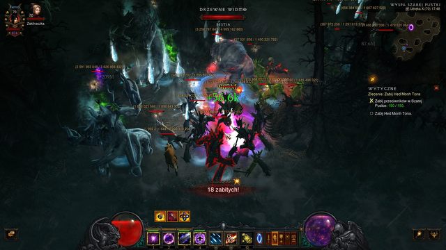 Standardowo już wprowadzono kolejne nowe przedmioty legendarne, kilkanaście z nich przemodelowano, podobnie jak niektóre zielone komplety. Na szczególną uwagą zasługują dwa z nich. To zestawy, które istnieją od początku Diablo III, a w które dopiero aktualizacja 2.4.0 tchnęła nowe życie w postaci atrakcyjnych bonusów. Mowa o amulecie Obietnica Podróżnika i pierścieniu Róża Wiatrów, tworzących zestaw Nieskończona Wędrówka, oraz o pierścieniach Jęczący Żywiciel i Litania Niepokonanych, tworzących zestaw Dziedzictwo Koszmarów. Pierwszy z owych kompletów będzie teraz powodować zmniejszenie otrzymywanych obrażeń o 50% w trakcie poruszania się, a jednocześnie zwiększy zadawane przez nas obrażenia o 100%, gdy będziemy stać w miejscu. Dziedzictwo Koszmarów zaoferuje natomiast zwiększenie o 100% zadawanych obrażeń od każdego przedmiotu starożytnego znajdującego się w naszym wyposażeniu, a jednocześnie zredukuje otrzymywane obrażenia o 4%. Jest tylko jeden warunek: w tym samym momencie nie można dysponować innymi zestawami legendarnymi. Trzeba przyznać, że brzmi to dość ciekawie. Wszak trudno sobie wyobrazić przy aktualnym kształcie gry jakąkolwiek postać bez słynnych sześcioczęściowych setów. W sprzężeniu z absolutnie nowymi przedmiotami legendarnymi zaprezentowany duet pierścieni może umożliwić kolejne wariacje na temat konfiguracji sprzętowej bohaterów Sanktuarium.