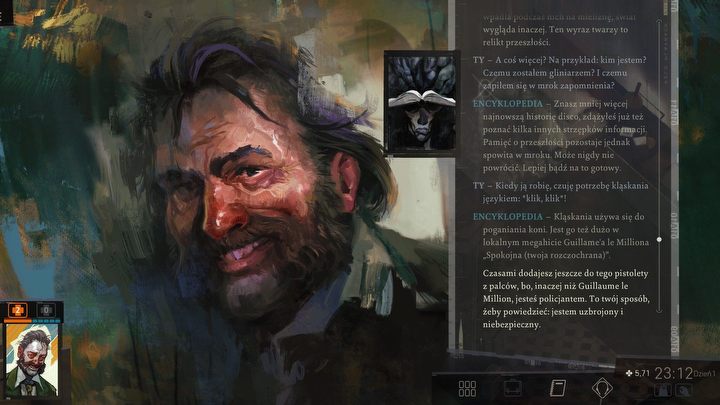 Jak więc widzicie, krok po kroku można okiełznać dość chaotyczną osobowość naszego gliny, zidentyfikować wszystkie jej komponenty i zrozumieć, jakie cechy tego człowieka najbardziej chcemy doskonalić. Rozwój postaci pozwala uczynić z niego perfekcjonistycznego artystę dostrzegającego piękno w każdym aspekcie rzeczywistości, użalającą się nad sobą ciepłą kluchę, która najchętniej odeszłaby na zawsze w zapomnienie, opryskliwego, agresywnego, uzależnionego od używek chama czy też po prostu porządnego detektywa, chcącego być odrobinę lepszą wersją siebie niż kiedyś. A tychże archetypów jest tu co niemiara i można przeplatać je ze sobą w różnych konfiguracjach. Dla mnie tworzenie takiego cyfrowego człowieka, niby od zera, ale jednak na pewnych fundamentach, było doświadczeniem niezwykle interesującym i wartościowym od strony czysto... ludzkiej. Ale to nie wszystko, co kryje w sobie ten cudaczny system.