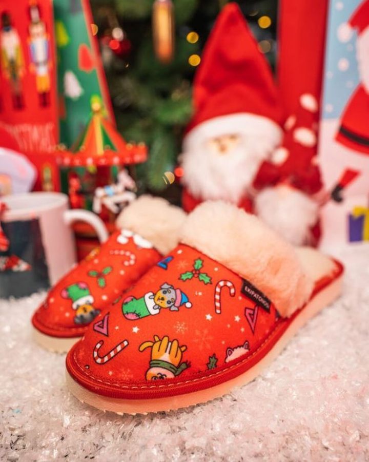 Nietypowe gadżety? Owszem, bywają. W kolekcji świątecznej 2021 znalazły się „Pantofle Christmas pattern czerwone” za 49,99 zł, niestety już wyprzedane. Może będą jakieś z kurczaczkami na Wielkanoc?
