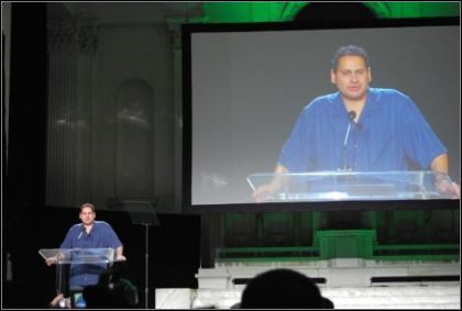 Po żywiołowym powitaniu zgromadzonej publiczności i pochwaleniu się, jakim to on nie jest graczem, Diaz zapowiedział wejście prezesa Activision, Mike’a Griffina. Ten, niby przypadkiem, miał przy sobie konsolę NDS z uruchomionym Guitar Hero: On Tour i to temu właśnie tytułowi poświęcił obszerną część swojej wypowiedzi. Dowiedzieliśmy się o doskonałej sprzedaży muzycznej zręcznościówki oraz fakcie, że w ostatnim czasie liczba fanów serii wzrosła czterokrotnie. Spory, bo dwukrotny wzrost liczby zwolenników, zanotowała też saga Call of Duty, na co wpływ miała doskonała sprzedaż czwartej odsłony wojennego FPS-a. Nic więc dziwnego, że Griffin stwierdził, iż jego firma tworzy obecnie najlepsze gry w historii, a mariaż z grupą Blizzard tylko wzmocnił kondycję koncernu.