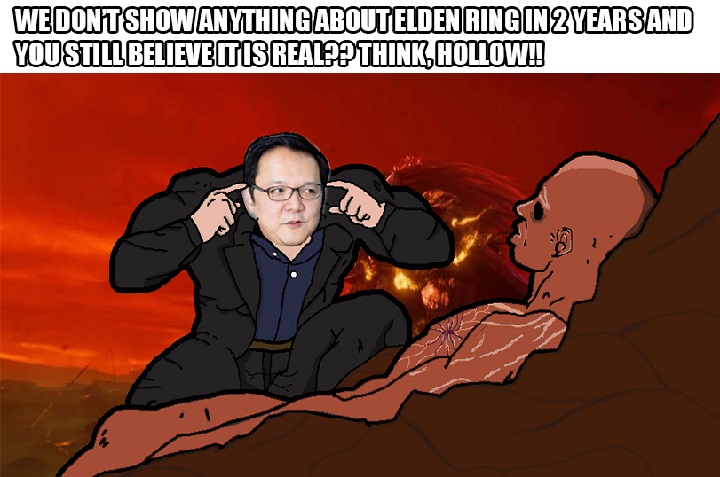 Co bardziej złośliwi gracze zaczęli tworzyć memy, mające przekonać fanów, że dwa lata milczenia ze strony deweloperów muszą oznaczać porzucenie projektu. Wiara w Elden Ringa wciąż jednak się tliła.
