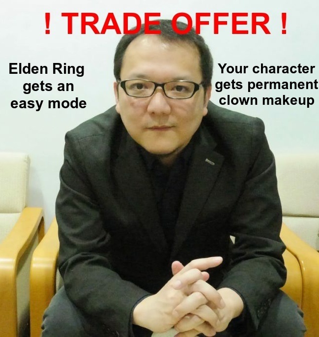 W międzyczasie – jak to w przypadku gier typu soulslike bywa – rozgorzało wiele dyskusji na temat poziomu trudności Elden Ringa. Czy będzie bardziej wymagający niż Soulsy? A może FromSoftware w końcu się ugnie i zaoferuje w swojej produkcji tak zwany „easy mode”? Skusilibyście się na takowy, nawet gdyby oznaczało to konieczność grania postacią z makijażem klauna na twarzy?