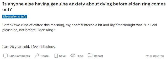 Nic dziwnego, że oczekiwanie na Elden Ringa było niezwykle stresującym okresem dla największych fanów. Niektórzy prawdopodobnie zdążyli dorobić się siwych włosów, wyglądając jakichkolwiek informacji o grze – i to niezależnie od ich aktualnego wieku.