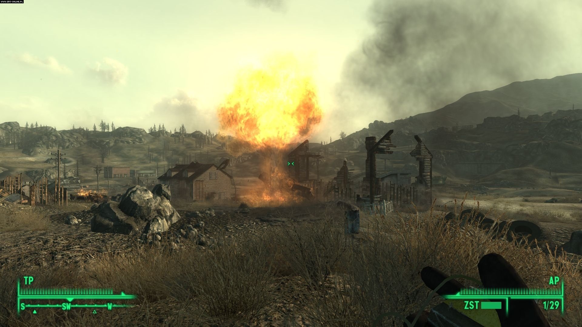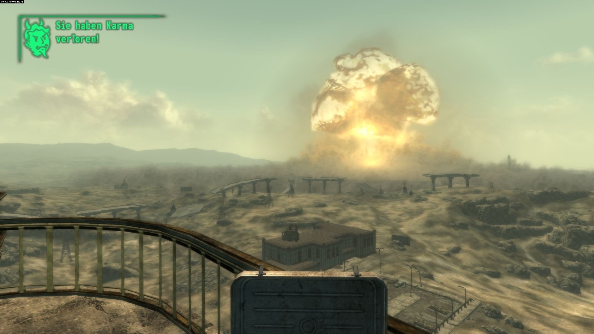 Największe, niezapomniane wrażenie robi jednak możliwość wysadzenia w powietrze całego miasta. W pewnym momencie gra pozwala nam zadecydować, czy zdetonujemy „atomówkę” zlokalizowaną w centrum Megatony. Odpowiedzialny za efekty silnik Gamebryo tworzy piękną, ogromną scenę eksplozji, jeśli tylko gracz postanowi wcisnąć „czerwony przycisk” aktywujący bombę.