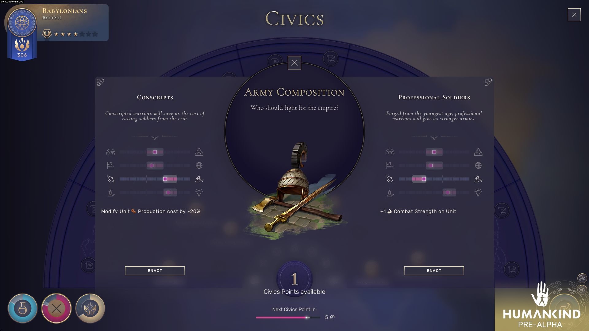 Jak więc widzicie na tych kilku przykładach, autorzy „Ludzkości” postanowili zrobić grę trochę bardziej realistyczną od Cywilizacji. Nie znajdziecie w niej Gandhiego, który uwielbia atom, czy Polaków pokonujących Rzymian – a przynajmniej ja czegoś takiego sobie w niej nie wyobrażam. Czy takie podejście się sprawdzi? Trudno już teraz wyrokować, bo z jednej strony odróżnia to ów tytuł od konkurencji, a z drugiej może mu z tego powodu brakować własnej tożsamości; w końcu nie odpalamy gier dlatego, że są realistyczne – mają być przede wszystkim dobre.