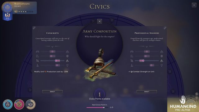 W Humankind co rusz musimy podejmować proste decyzje nawiązujące do wydarzeń z Europy Universalis czy Crusader Kings. Przykładowo po walnej bitwie w naszym mieście może pojawić się wielu kalekich żołnierzy. To od nas będzie zależeć, czy powitamy ich owacjami (co zaowocuje uroczystościami i dodatkowymi bonusami przez kilka tur), czy jednak spróbujemy ich wykorzystać do różnych prac, co zmniejszy koszt produkcji jednostek.
