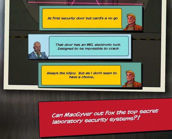 W 2018 roku marka doczekała się jeszcze jednej adaptacji, choć już nie w formie klasycznej gry wideo, lecz pudełkowego escape roomu. MacGyver: The Escape Room Game od Pressman Toy stawiało na kooperacyjne rozwiązywanie zagadek i wyraźnie próbowało oddać ducha serialu – zamiast walki liczyły się tu spryt, analiza wskazówek i improwizacja. W pudełku znalazło się pięć osobnych scenariuszy, a rozgrywkę wspierała towarzysząca im strona internetowa z timerem, podpowiedziami i systemem wpisywania rozwiązań. Gra była przeznaczona dla 1-4 osób i w praktyce próbowała zamienić telewizyjne „macgyveryzmy” na serię rodzinnych, lekkich łamigłówek.