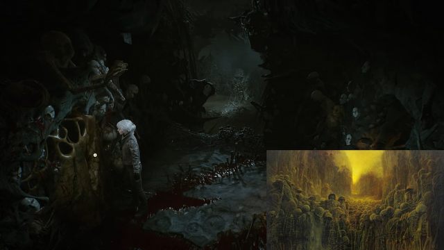 W redakcyjnym gronie mieliśmy także wrażenie, że i przedstawione wyżej dzieło Beksińskiego, na którym widnieje coś w rodzaju cmentarza umarłych, zostało wykorzystane jako inspiracja projektu zaświatów Niwy, które również złożone są z wielu ciał, czaszek, kości i pustych twarzy. Bardzo nieprzyjemna dla zmysłów, totalnie spaczona lokacja – co widać, słychać i czuć.
