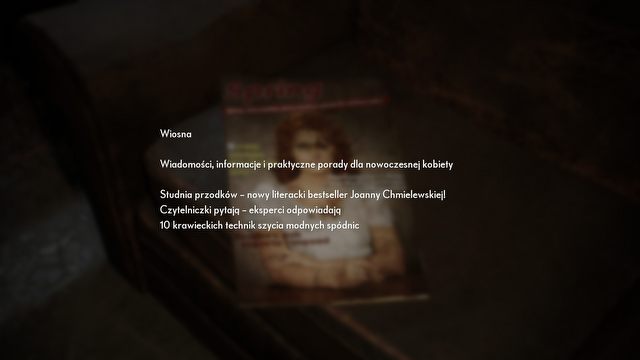 Bloober umieścił w grze również wzmiankę o jednej z najbardziej rozpoznawalnych polskich pisarek na całym świecie – Joannie Chmielewskiej. Zrobił to za pomocą okładki czasopisma „Wiosna”, na której – oprócz porad dla kobiet nowoczesnych i miłośniczek krawiectwa – znalazła się reklama „nowego literackiego bestsellera” autorki – Studni przodków. Książka ta to zresztą zabawny kryminał opowiadający o familii pragnącej rozwikłać szereg rodzinnych tajemnic. Wcale jako Marianna nie robimy tego samego...