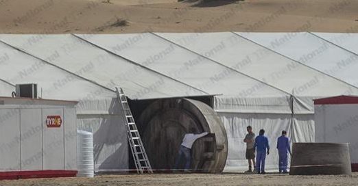 Co ciekawe jest już kręcony, a fani wciąż wiedzą o tym projekcie niewiele. Z planu widowiska J.J. Abramsa napływają szczątkowe informacje. Jak donosi The National, na pustyni w Abu Zabi spostrzeżono ekipę filmową, która rzekomo kręci sceny na Tatooine, czego dowodem ma być poniższe zdjęcie. Po głębszej analizie okazuje się, że tym dziwnym znaleziskiem wtaczanym namiotu nie może być nic innego, jak stopa maszyny kroczącej AT-AT. Zapewne do grudnia 2015 roku (wtedy przewidziano premierę), będziemy zalewani tego typu rewelacjami. Część z nich na pewno okaże się prawdziwa, podobnie jak pojawiające się wcześniej plotki o obsadzie.