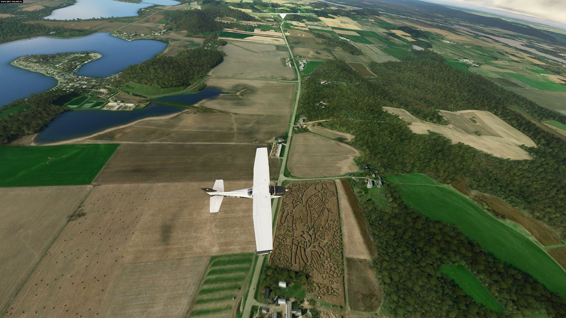 Popularną atrakcją w Stanach Zjednoczonych są labirynty wycinane w polach kukurydzy, tzw. corn maze. Farmerzy jednak nie poprzestają tylko na karczowaniu losowych dróg w gąszczu roślin. Wielu dba, by korytarze te układy się w precyzyjnie wykonany obraz, który widać wyraźnie jedynie z lotu ptaka. Sporo takich kukurydzianych landszaftów możemy zobaczyć we Flight Simulatorze 2020 po wpisaniu odpowiednich współrzędnych na mapie świata.