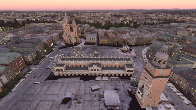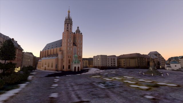 Rynek krakowski jest jednym z trzech punktów POI odtworzonych w Polsce. Obok wygenerowanych kamieniczek mamy wykonany od podstaw kościół Mariacki, Sukiennice, pomnik Mickiewicza i wieżę ratuszową. Biorąc pod uwagę, że nie mamy tam biegać w trybie FPP, tylko oglądać wszystko z góry, poziom detali jest całkiem niezły.