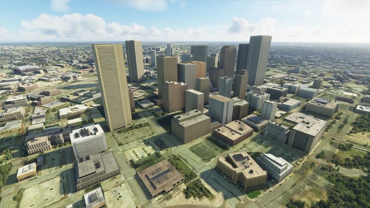 Oto Dallas, przykład miasta w USA, które zostało wygenerowane proceduralnie z zestawu domyślnych obiektów, tak jak te w Polsce.
