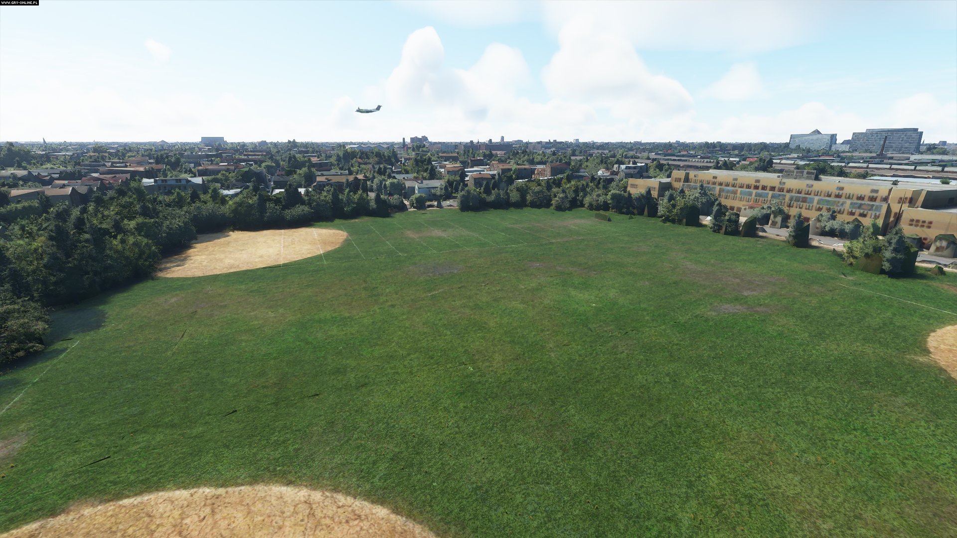 Niestety, wkradł się błąd w plan lotu i zamiast mola w Sopocie pokazaliśmy molo w Brzezinach, niedaleko miejsca docelowego. Na obrazku z właściwą już lokacją nadal brakuje samego obiektu mola, które najwyraźniej nie znalazło się na liście domyślnych obiektów. Znacznie bardziej realnie wygląda za to same otoczenie tej nadmorskiej atrakcji, łącznie z dużym placem Skweru kuracyjnego przed wejściem.