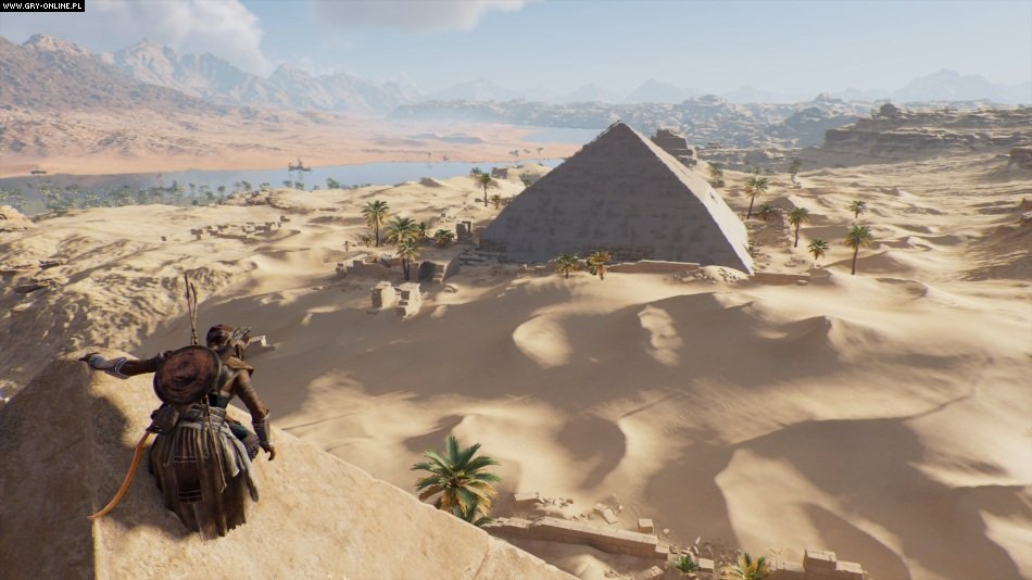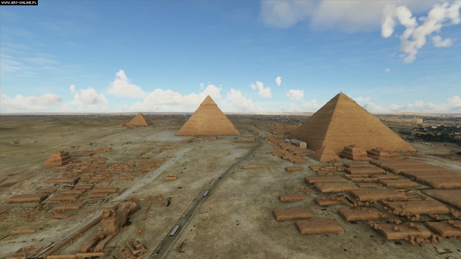 Tuż za rozległym obszarem Kairu, stolicy Egiptu, znajdziemy kompleks piramid w Gizie wraz ze Sfinksem. Liczba detali nie jest tu tak duża jak w Assassin’s Creed: Origins, ale budowle te i tak wyglądają dobrze, nawet jeśli wylądujemy tuż u ich stóp. Jeśli polecimy dalej na południe, zobaczymy więcej specjalnie wykonanych piramid.